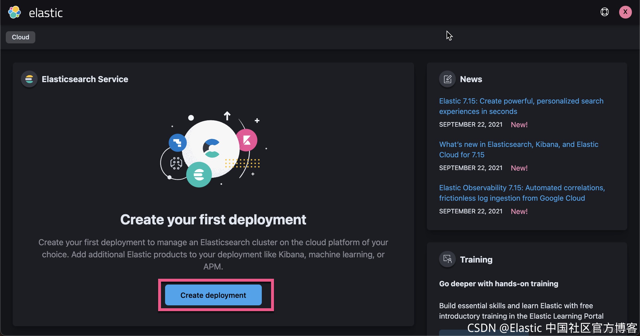 我们再次在浏览器中打开链接 cloud.elastic.co: