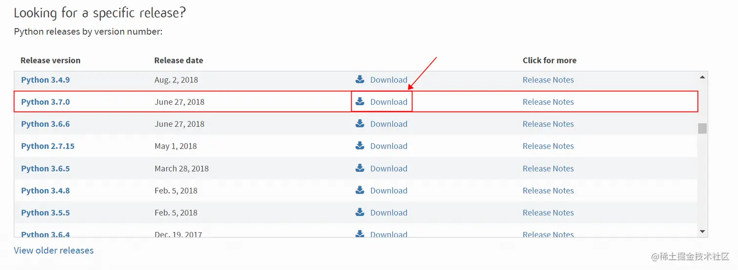 当然,我也推荐你点击All releases,然后下载Python3.7.0版本进行安装,本系列教程都将在这个版本下进行编写代码。