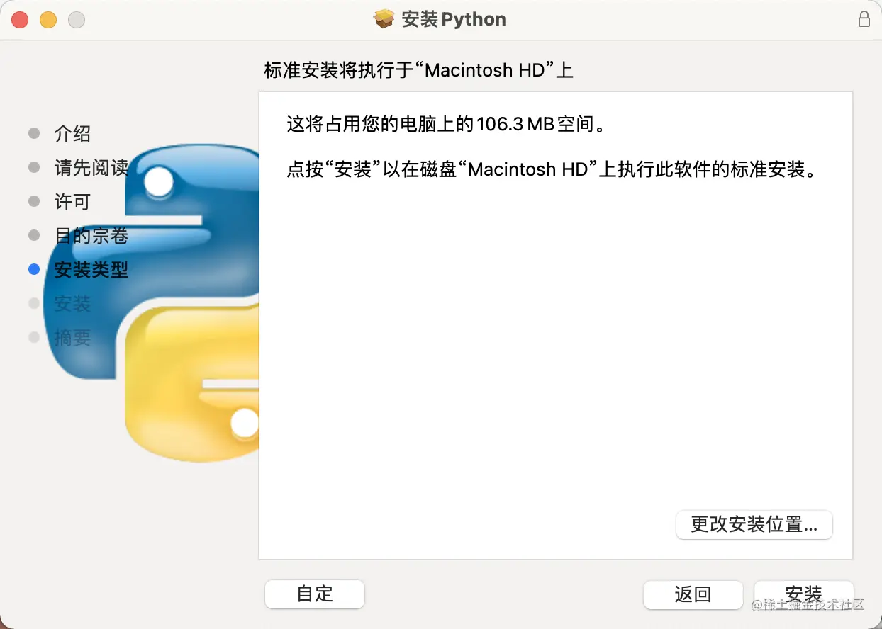2)Mac一般只有一个磁盘,所以安装位置默认即可。