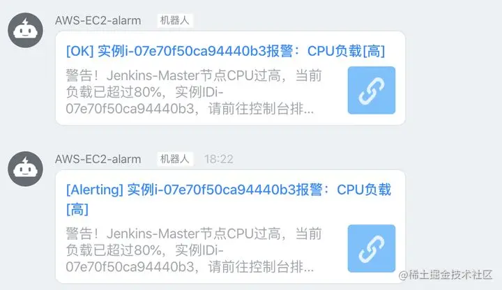 可以修改对应字段,丰富钉钉机器人的功能,比如点击链接直接转到服务控制台、监控仪表盘