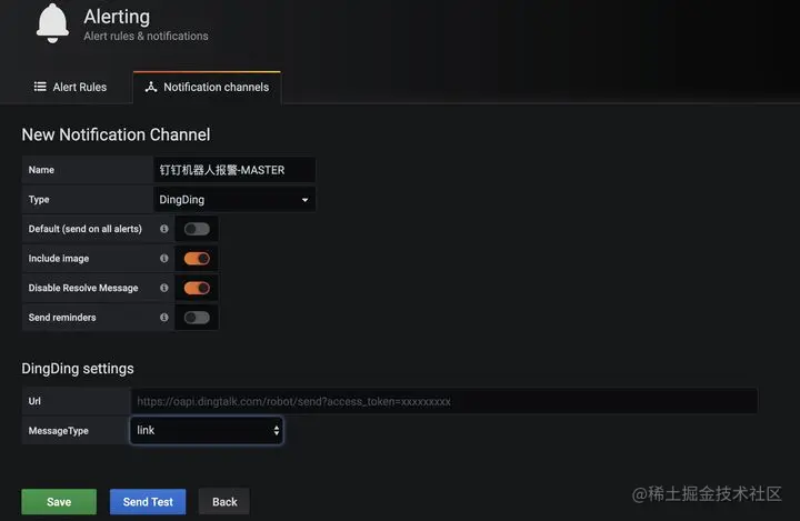 grafana接入钉钉机器人只支持link模式,在文中使用link只是当一个文本预览使用,以下是一个link样例