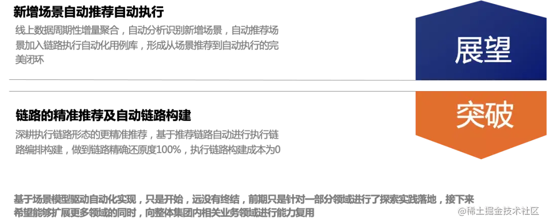 在盒马场景探索的场景模型驱动自动化,已经在交易、履约、商品、配送、自提等诸多领域进行了实践,并取得了一定的成果。同时在发布回归、小量数据的常规化压测、系统重构、线上业务巡检等诸多场景中获得了不错的使用。