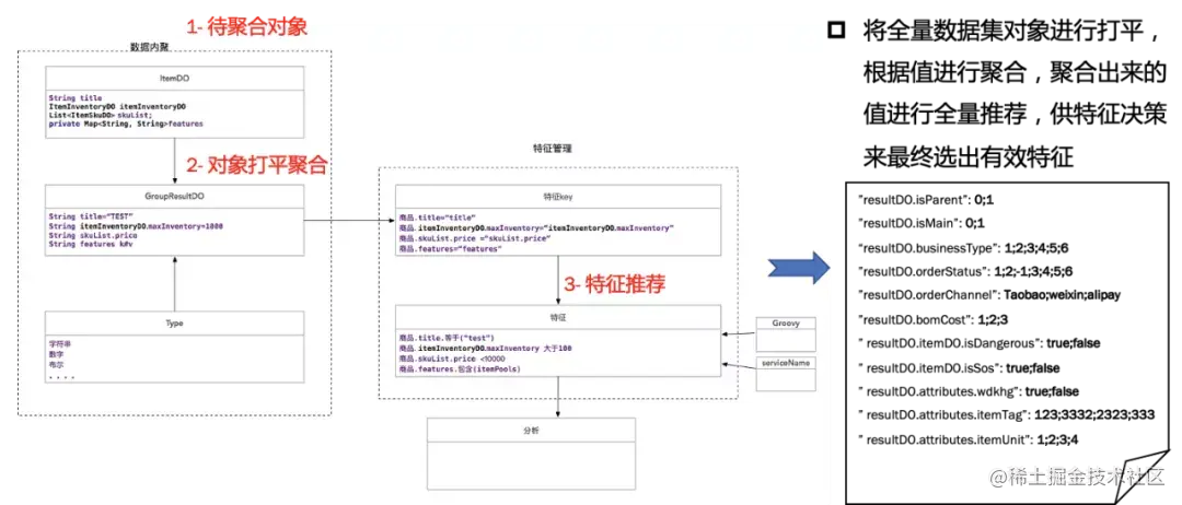 3)特征推荐:针对上述聚合的内容进行推荐,此部分会将潜在的特征字段全量进行推荐。