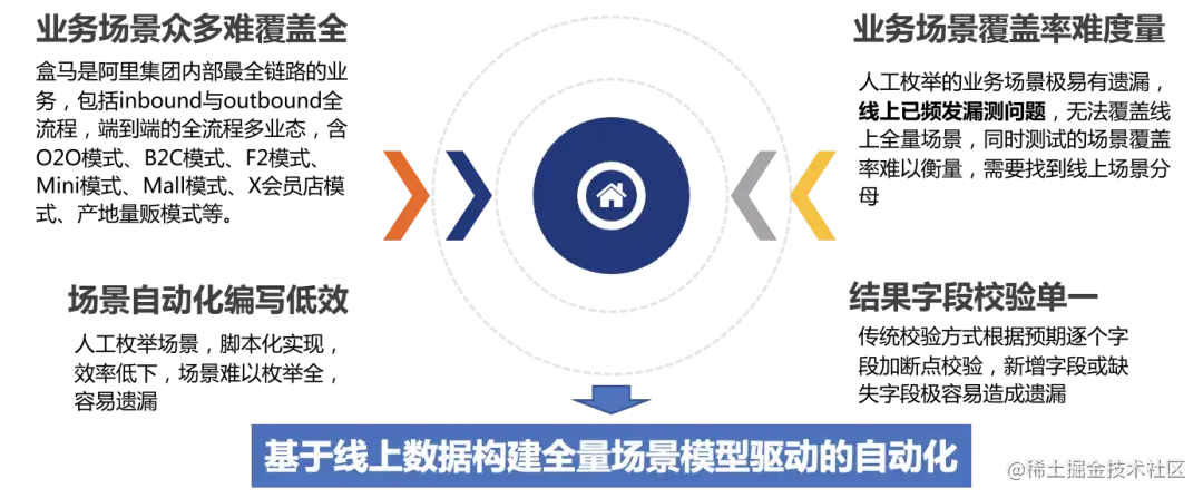 在这种背景下,盒马质量团队进行了较全场景驱动自动化测试的探索,利用线上数据建立测试场景模型。下面会更加详细的进行讲述。