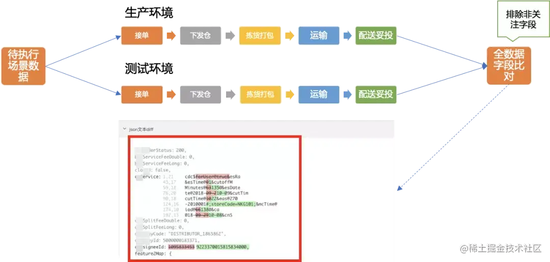 三、执行结果的校验:重点在于如何自动的进行结果数据的一致性校验。大致思路为:1)所有的数据最终会持久化落盘;2)基于持久化数据进行全字段对比;3)忽略规则配置;