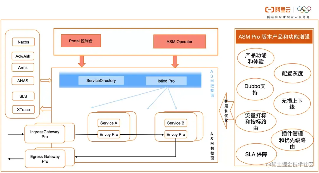 注:ASM Pro 自研开发了ServiceDiretory 组件(可以参看 ASM Pro 产品功能架构图),实现了多注册中心对接以及部署元信息的动态获取;