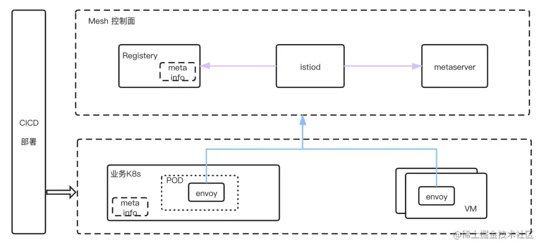 - 非 K8s 场景,可以通过微服务已集成的服务注册中心或者元数据配置管理服务(metadata server)来集成实现。