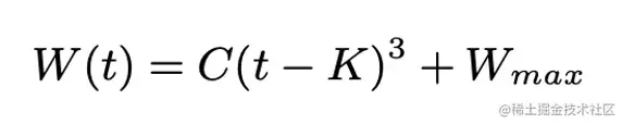 其中,W(t)是在时间t时,窗口的大小,C为CUBIC参数,t为上次减窗经过的时间,K为上述函数在没有进一步损失事件时将W增加到Wmax所需要的时间周期,当发生拥塞事件时,CUBIC将当前cwnd设置为Wmax * β,乘法减小系数;由此可知K是: