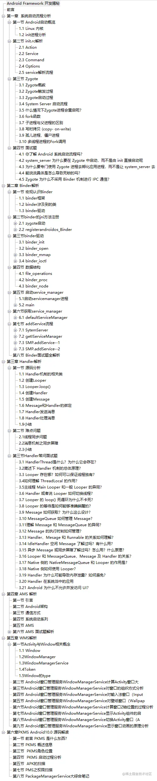 **这里给大家分享一份由腾讯技术团队出品的《Android Framework 开发揭秘》总共有19万字,包含109个知识点,**通过经典Binder、Handler、AMS等面试题解析加深你对Android Framework框架层的理解,资料领取点击小方小卡片即可。