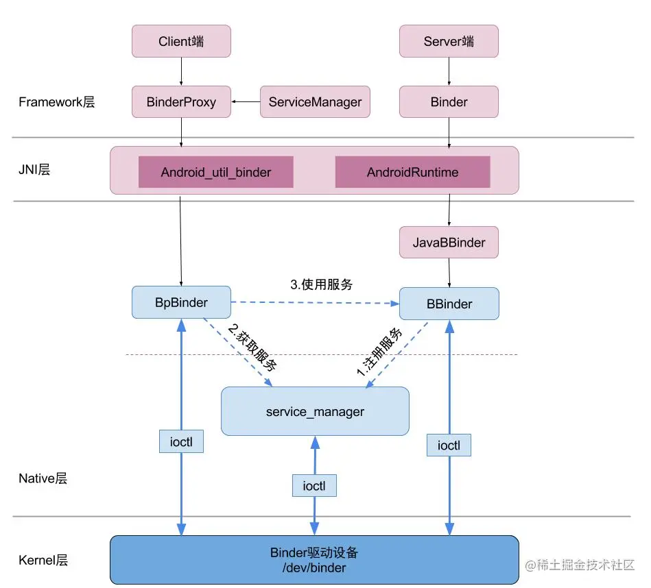 接下来再从binder的jni方法注册、binder驱动、数据结构、启动service_manager、获取service_manager、addService流程等逐级进行学习。