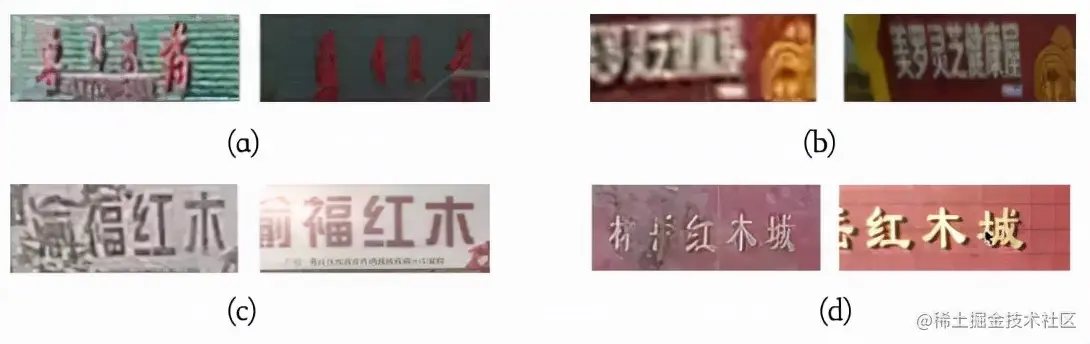 图8. 需局部特征优化的不同示例,(a)截断 (b)遮挡(c)文本变化
