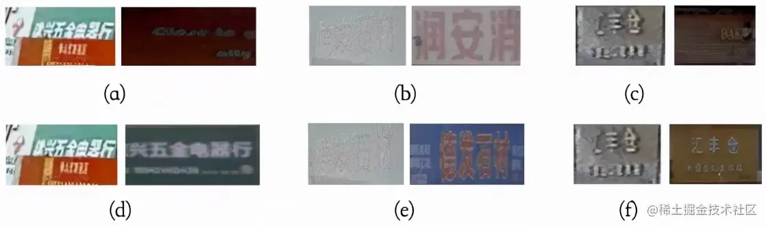 图11. 评测集中难例展示,(a)(b)(c)是优化前的错误检索结果,(d)(e)(f)是优化后的检索结果