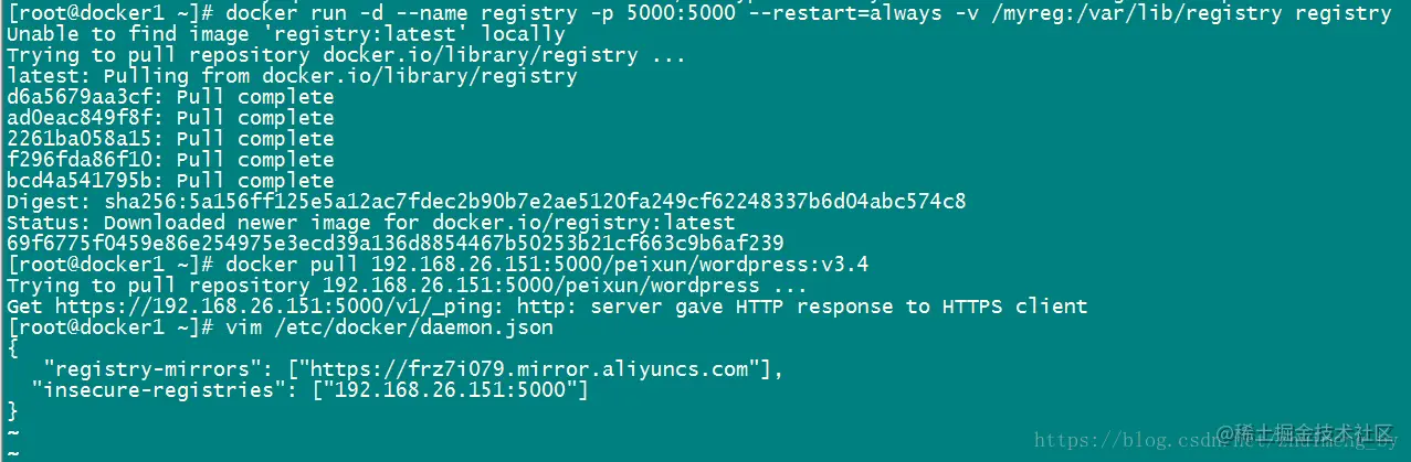 6、编辑docker1上的/etc/docker/daemon.json 文件