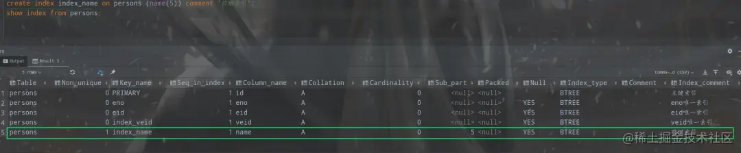 例如,可以对 persons 表中的 name(varchar(16))字段 中 name 的前 5 个字符建立索引。