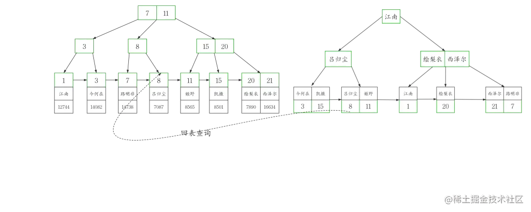 说了聚簇索引和二级索引 肯定要提到**「回表查询」**。
