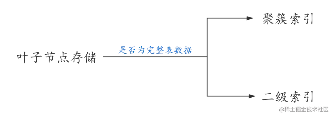 首先看一下 InnoDB 存储引擎中的索引,InnoDB 表的索引按照叶子节点存储的是否为完整表数据分为聚簇索引和二级索引。