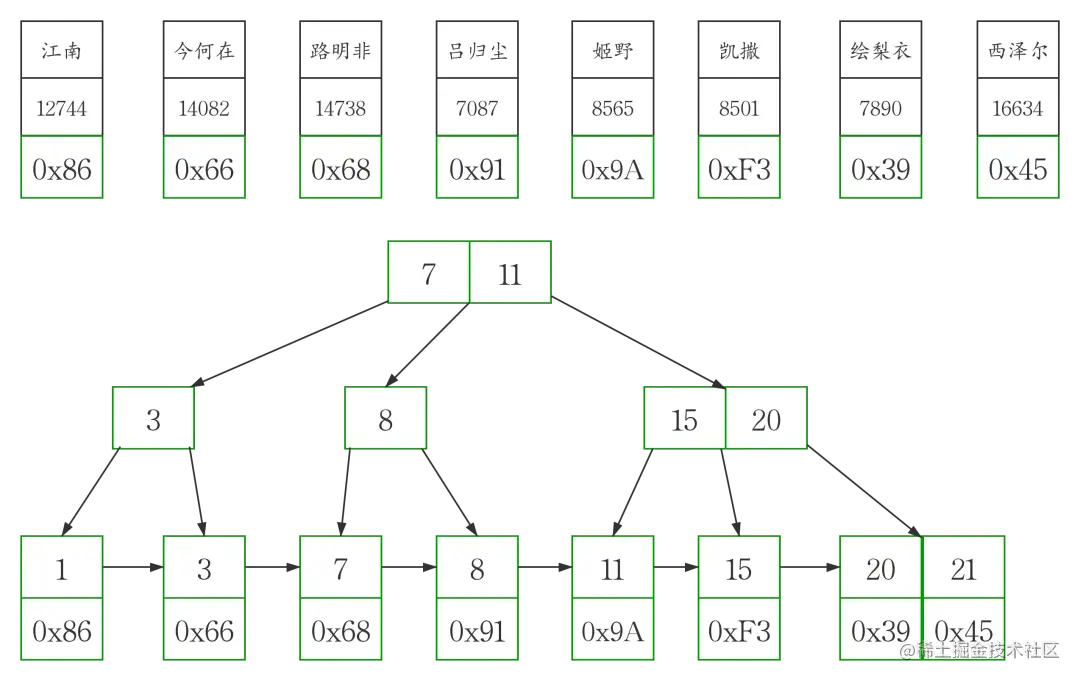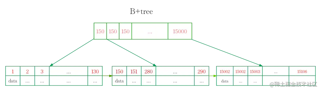 另外 B+tree 叶子节点采用单链表链接适合 MySQL 中常见的基于范围的顺序检索场景,而 B-tree 无法做到这一点。
