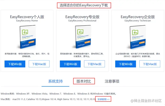 EasyRecovery支持Win系统和Mac系统,分为个人版、专业版以及企业版,可以选择适合自己的版本下载。EasyRecovery下载很简单,直接到到中文网站下载即可,下载地址:www.easyrecoverychina.com/xiazai.html,安装步骤也不复杂,如果有小伙伴不会可以直接在下载页面查看安装激活教程。