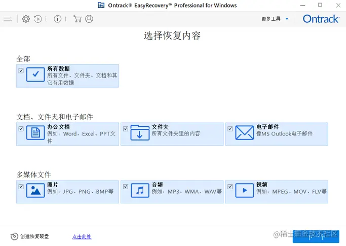 EasyRecovery虽然是一款很专业的电脑数据恢复软件,但是它的操作却很简单。打开软件选择数据恢复,软件会提示你选择恢复内容,也可以直接使用默认勾选的所有数据,然后点击下一个,选择你想要从哪个位置恢复数据。