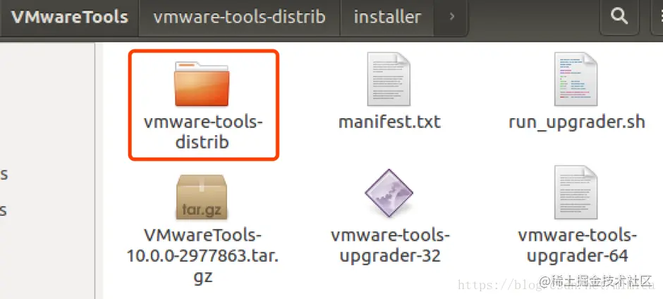 2) 解压VMwareTools-10.0.0-*.tar.gz生成vmware-tools-distrib,如下图所示: