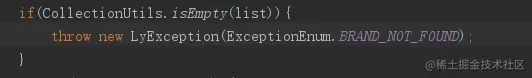 假如我们在处理业务的时候可以抛出LyException异常这个异常将会被异常处理类CommonExceptionHandler的handlerException方法拦截并通过ResponseEntity返回状态码和异常信息。