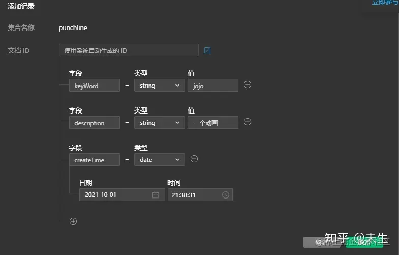 - 点击添加记录,创建一个下图一样的记录,注意“字段”不要填错。否则后面获取不到该记录