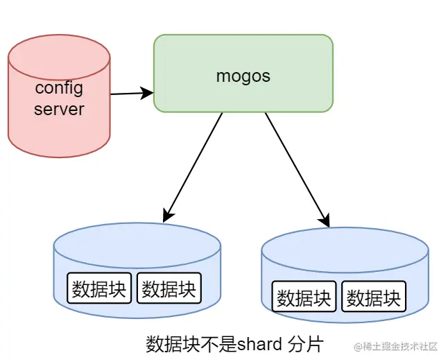 mongos 会将数据发送到 数据块中,实际上是 1 个 shard 分片对应多个数据块,也可以不对应数据块