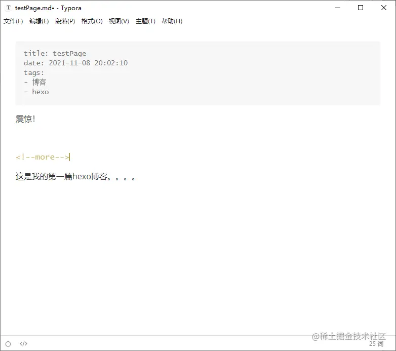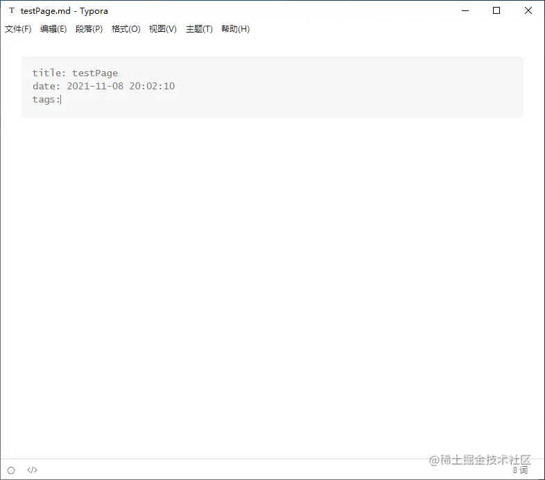 - 然后用typora打开此文章,默认会在头部自动填写文章title,创建时间,标签tags,可以自行修改