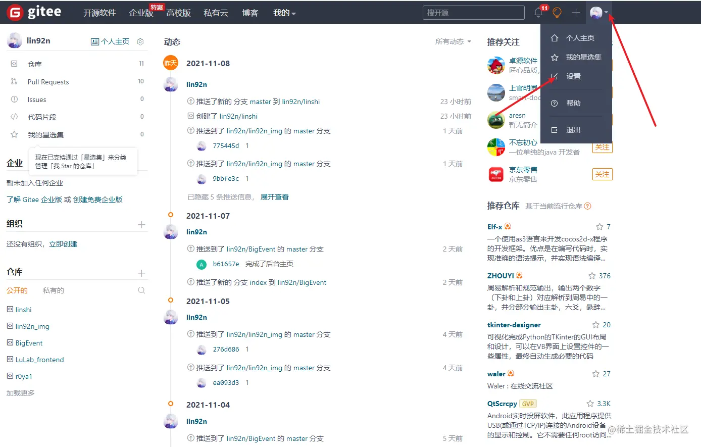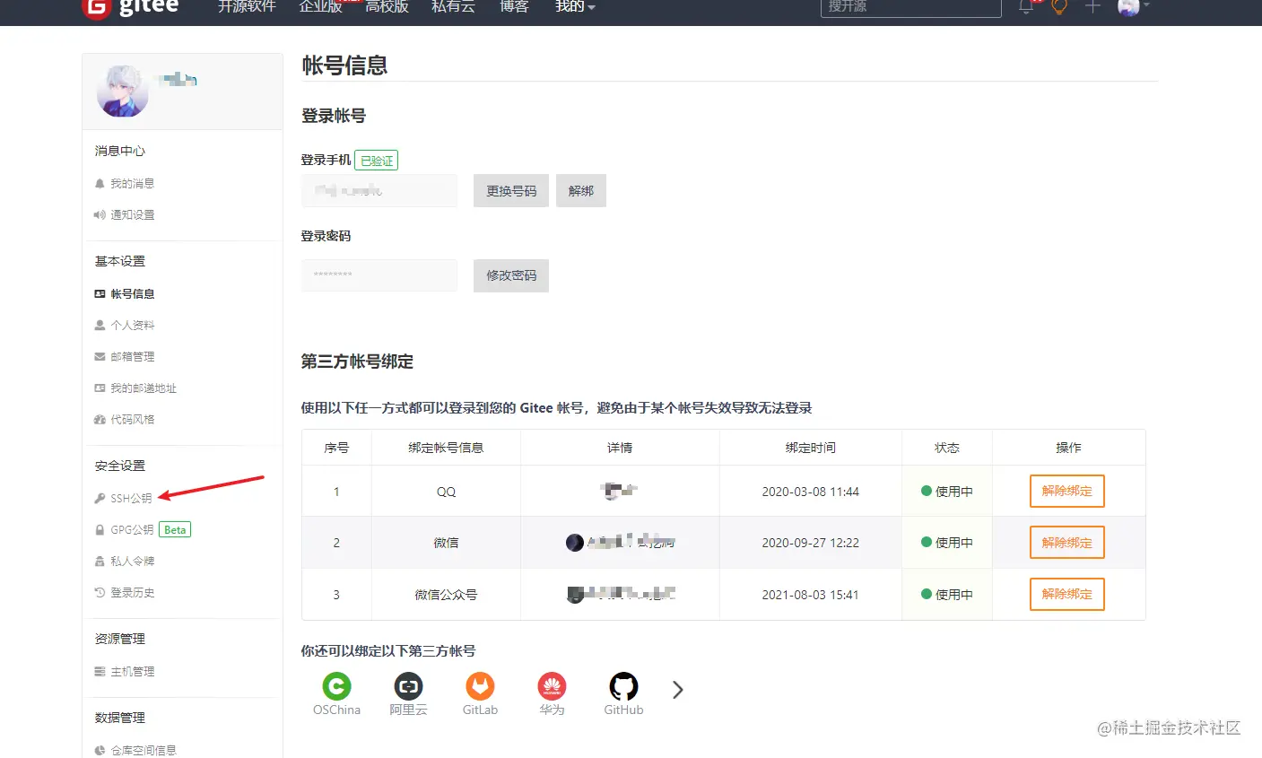 - 注册码云账号(用户名用英文且开头不能是数字)并设置密钥 且绑定邮箱,参考教程gitee.com/mvphp/gitee…