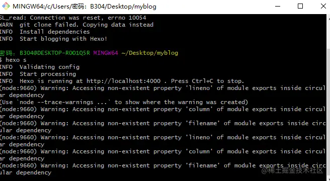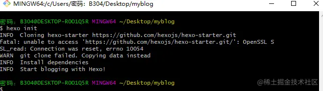 - 确认cmd前面的路径是你所新建的博客文件夹路径