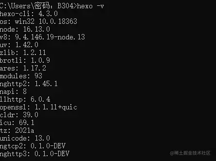 - 然后执行 hexo -v 来检查是否安装成功,如下即为安装成功