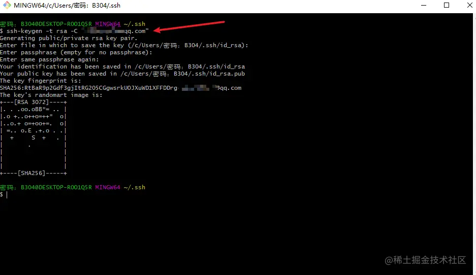 ssh-keygen -t rsa -C "xxxxx@xxxxx.com" #输入个人邮箱,然后一路敲回车即可