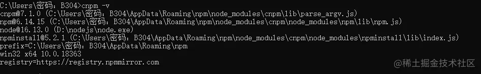 - 使用cnpm -v命令检查,看到如下图即为安装成功