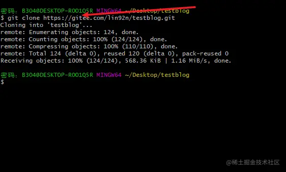 - 随便找个文件夹,右击打开git bash,执行命令 git clone "你复制的仓库地址",即可下载