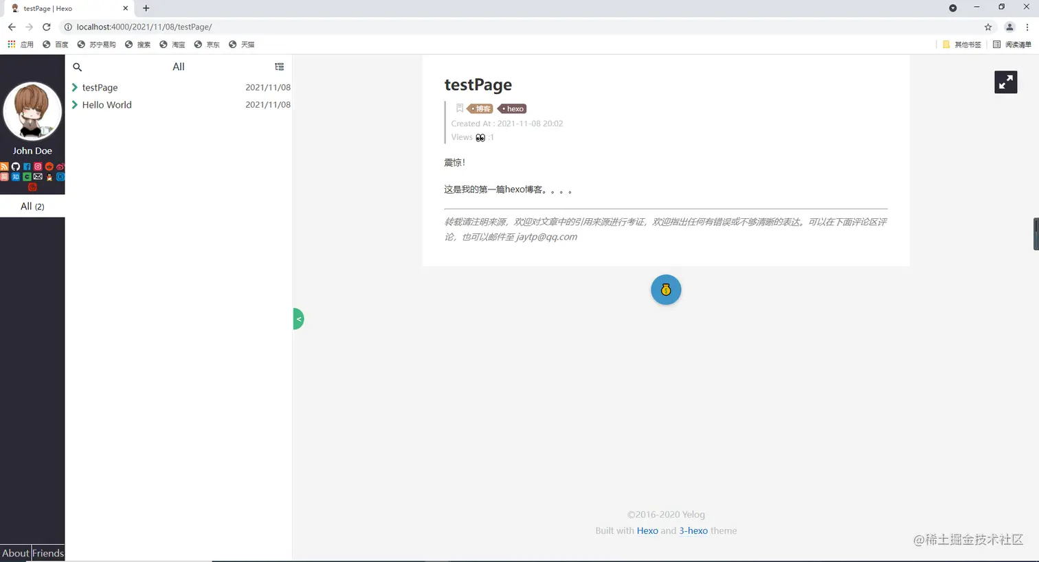 hexo clean清理,hexo g生成文章,hexo s本地测试,然后刷新页面 - 这里的