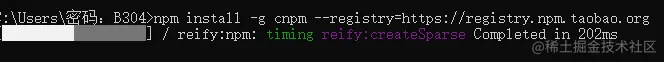 - 由于是从国外下载的,所以速度较慢,这里切换一下国内的源,还是cmd,输入命令 npm install -g cnpm --registry=registry.npm.taobao.org,等待下载完成