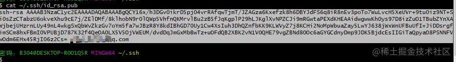 cat ~/.ssh/id_rsa.pub,复制该密钥