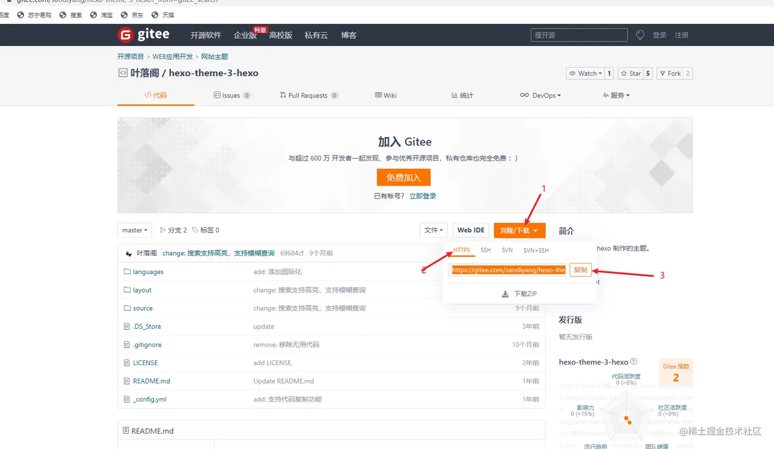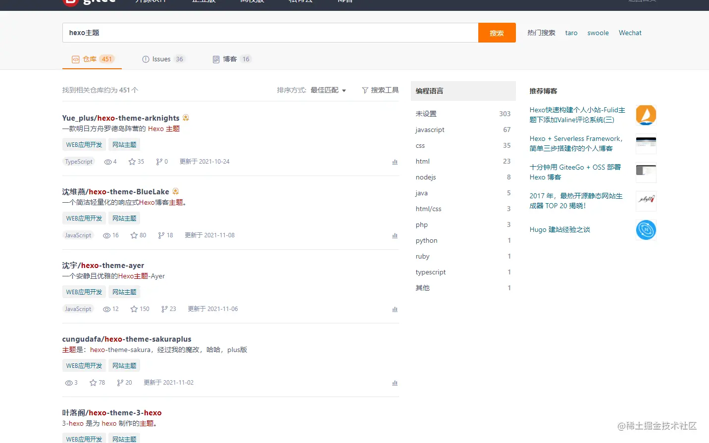 - 搜索引擎找一下hexo主题 (推荐 hexo.io/themes/inde…),然后到相应的仓库clone