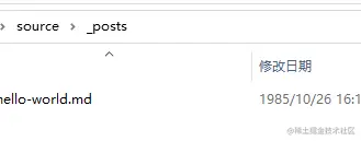 - 然后进入source目录下的_post文件夹下即可看到默认文章,这是hexo的测试文章,可以选择删去