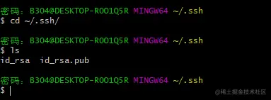 cd ~/.ssh,ls,看到如下两个文件即为安装成功
