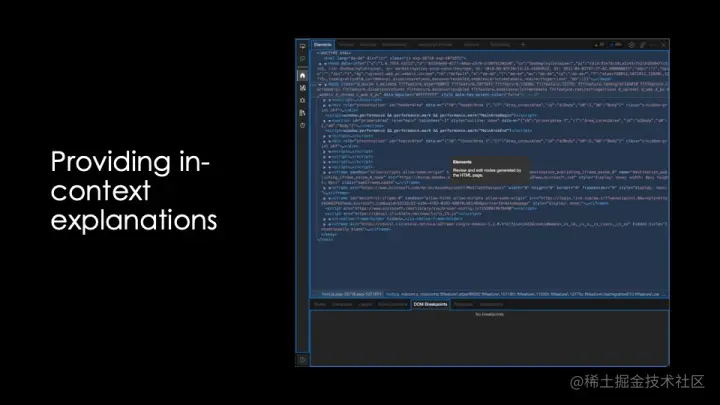 我们正在研究的另一项功能是“informational overlays”。我们打算提供一个帮助按钮,用于开启开发者工具的覆盖框,具体解释每款工具是什么、如何使用并列出说明文档链接。我们希望这一设计能够帮大家更轻松地了解各项功能。
