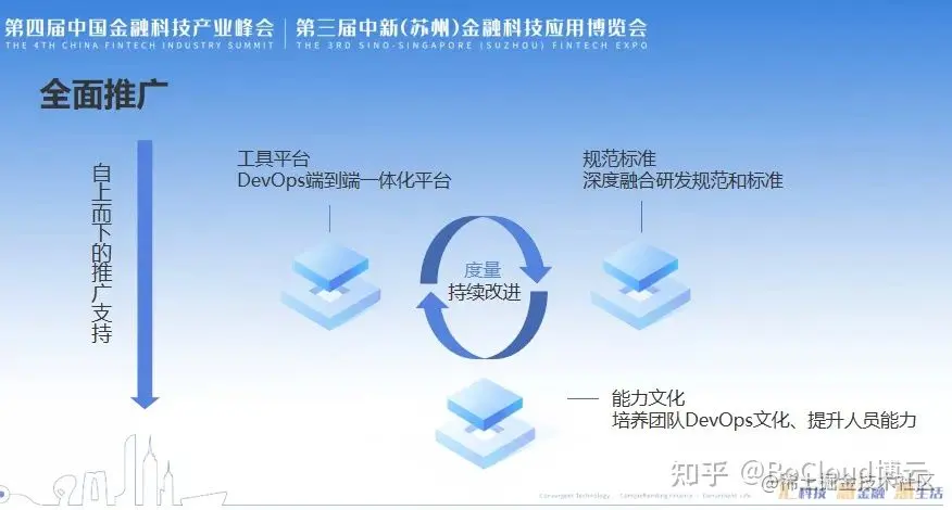 至于我们未来要做哪些事情,首先在平台建设完成之后,大家原来用的工具很多,但是平台逐步在用的过程当中,第一是自上而下的推广,平台让大家全部使用起来,但是所有的反馈和持续的建设,一定是从下往上逐步反馈的,所以这个本身来说,就是一个持续改进的过程,我的 DevOps 平台,一定要靠自己运转起来的,不是靠供应商持续给我们提供服务,需要我们自己的研发人员,自己的管控人员持续做度量和分析,最终实现平台真正规范的落地,这个才是我们精细化管理和研发效率提升最主要的方向。