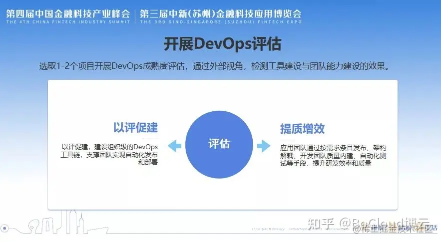 平台搭建完、度量完成之后,我们还做了一件事情,就是整个 DevOps 的成熟度评测,因为我们希望今年年底参加他们整个三级评测,最主要是以评促建,第二个是提质增效,通过外部视角看到我们研发平台有哪些不足,和行业内、行业外有哪些差距,以提升研发的水平和质量。
