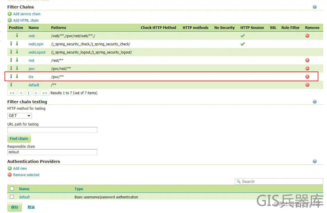 然后再设置一下geoserver的拦截器,规定哪些请求必须要进行上面的验证。
