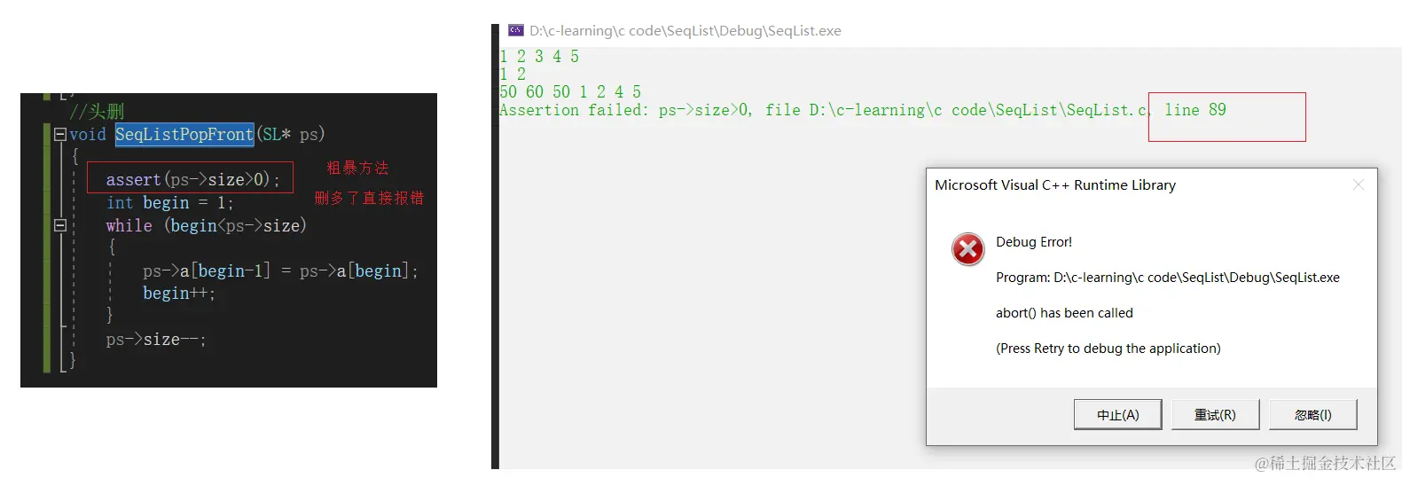 assert(ps->size > 0);//断言不为真直接报错,管你不轻