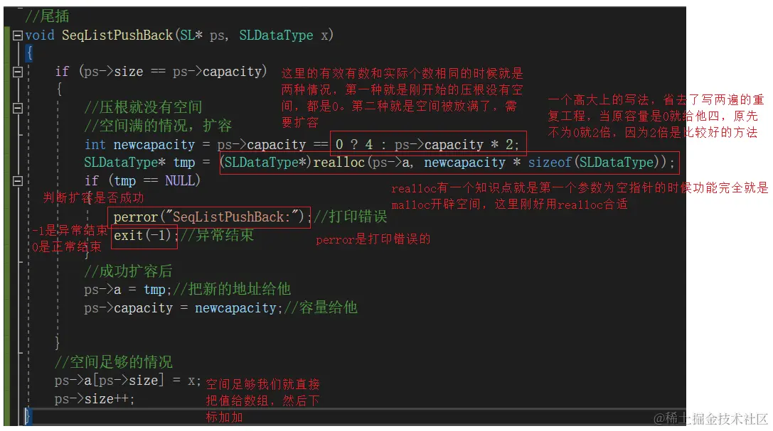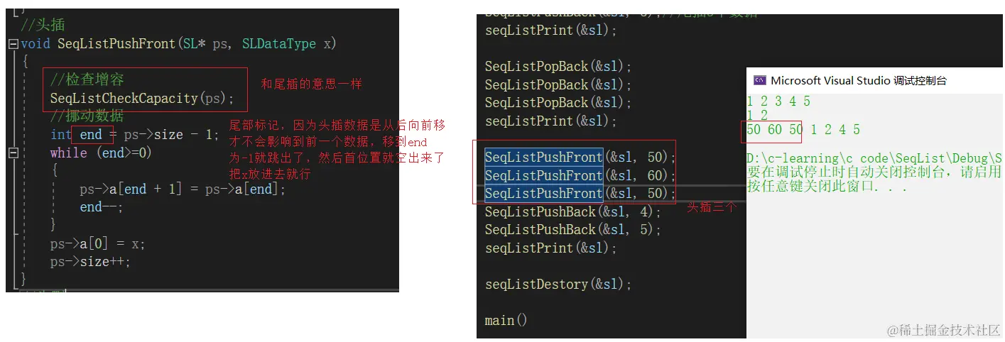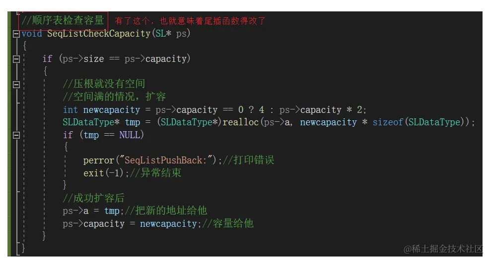 在写头插之前,我们思考一下,你要插入,肯定要考虑到是否需要扩容,那么就与之前尾插里面的扩容重了,所以可以抽取出来单独写一个函数