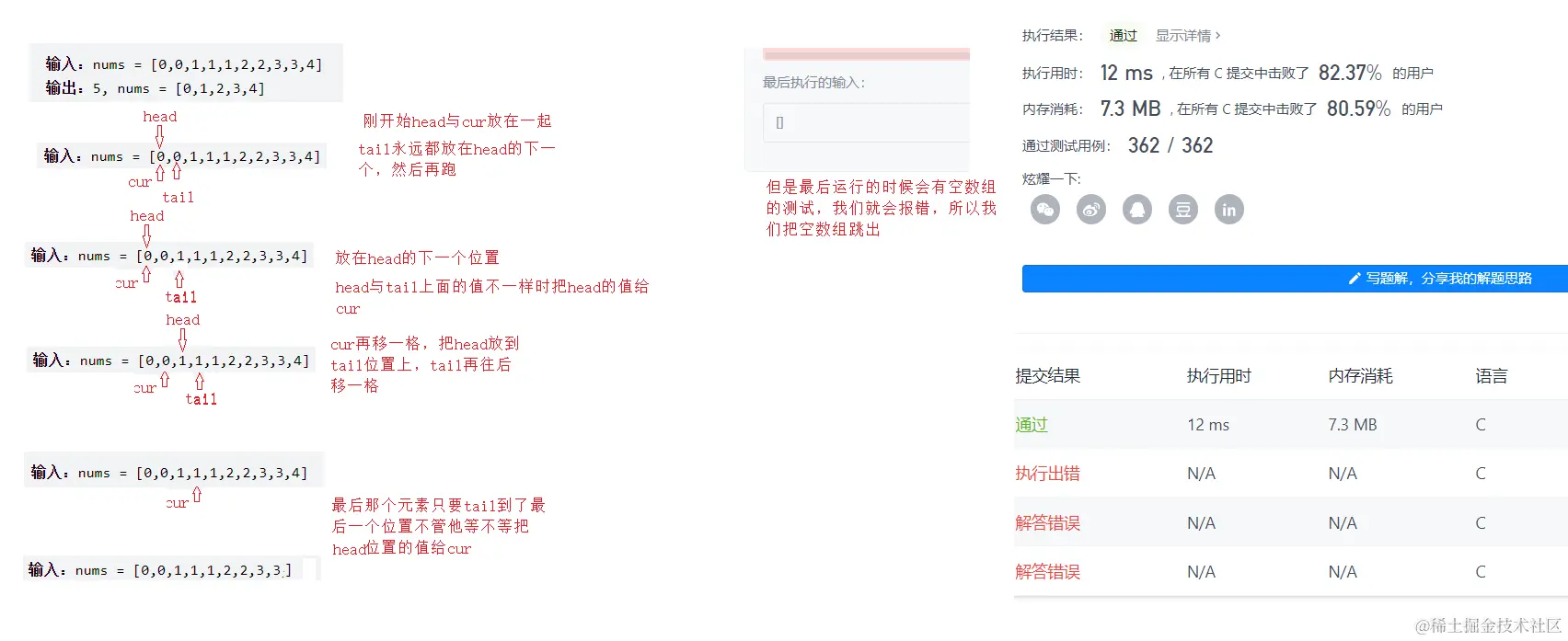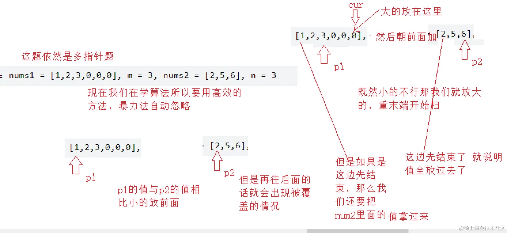 我们不能空看我们得画图解决,题目直接把空间定死,不会给你开额外的数组了,也就只能多指针解决