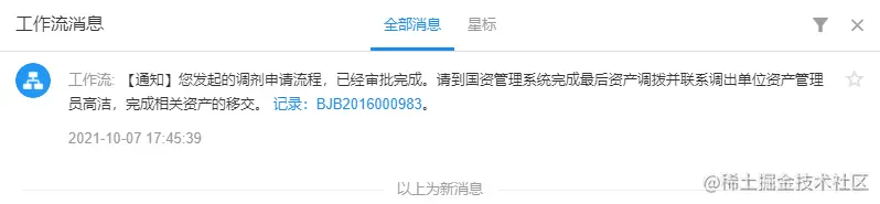 资产调剂审批流程通过后,申请调剂的人员将会收到消息提醒。此时申请人员可线下和本单位的资产管理员以及调出单位资产管理员联系,完成双方“统筹管理平台”的调拨操作和线下物资交接运输等事宜。至此,闲置资产调剂流程就结束了。