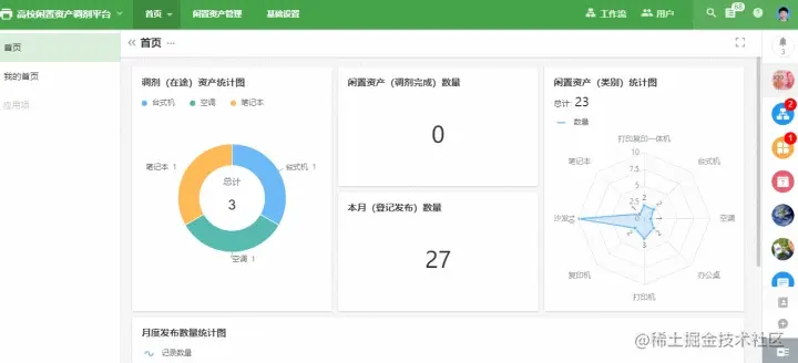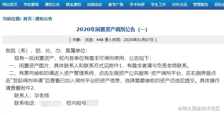 当各单位产生闲置资产以后,除了调拨回资产管理部门,往往没有其他的有效途径可以将这些闲置物品再度利用起来。目前高校常见的方法就是,在资产处的网站上发布闲置资产调剂公告。但是这种方式存在后续统计不便,资产调剂状态跟进不便,资产查阅不便等等诸多局限。