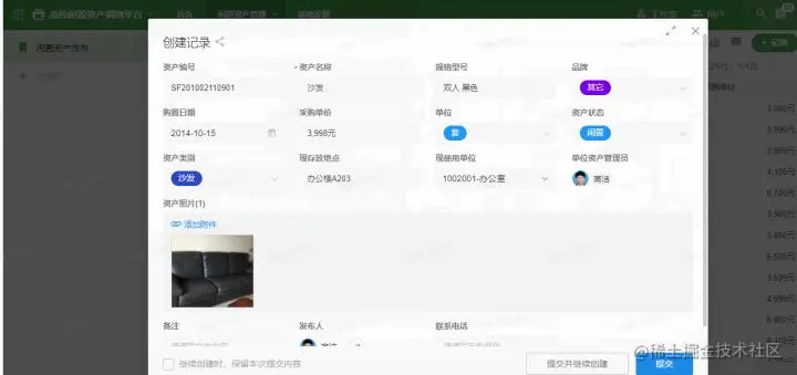 在闲置资产管理菜单下可根据资产类别、资产名称、规格型号等参数来查找所需资产,并且可点击放大查看资产图片,如需申请可直接资产详情页面点击“发起调剂申请”,即可发起该资产的调剂申请流程,如下图: